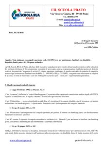 Istituto Comprensivo Mascagni di Prato > > Nota sindacale su congedi e permessi ex L. 104 – 1992 e ss. per assistenza a familiari con disabilità