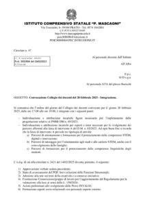CIRCOLARE N. 47 Integrazione Convocazione Collegio dei docenti del 20 febbraio
