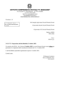 CIRCOLARE N. 21 Sospensione attività didattiche scuola Primaria Frosini