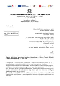 CIRCOLARE N. 87 Attivazione Laboratori inclusione interculturale – P.E