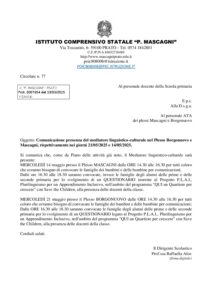 timbro_CIRCOLARE N. 77 Comunicazione presenza del mediatore linguistico-culturale scuola primaria